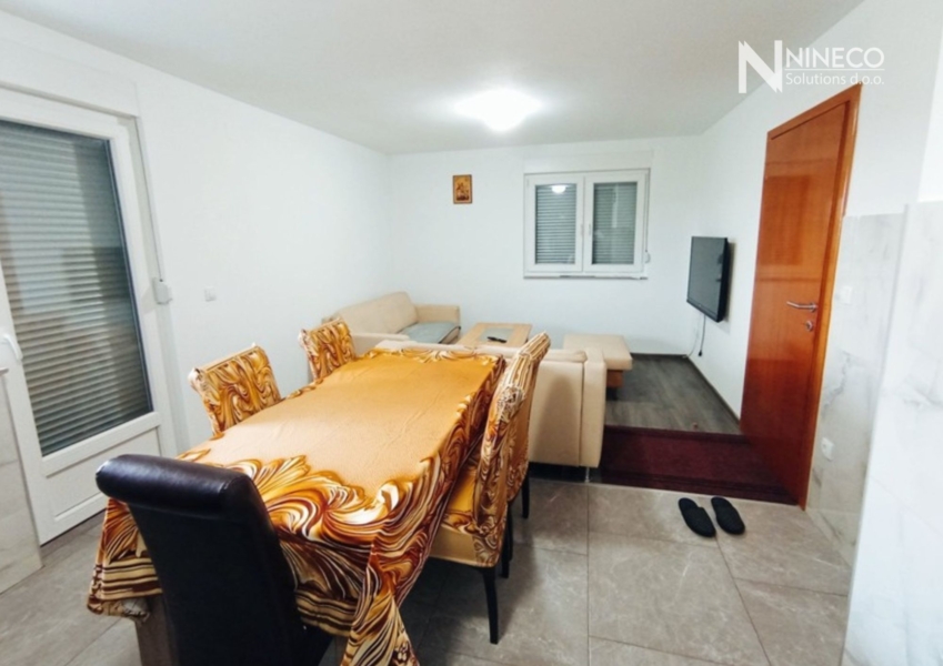 🔹Podrum se sastoji od toaleta i dvije prostorije, u potpunosti završenih s keramikom i svim instalacijama. Prostor je pogodan za proslave, druženja ili za radionicu nekog zanatskog tipa. U produžetku podruma nalazi se prostrana natkrivena terasa s predivnim pogledom na okolinu.